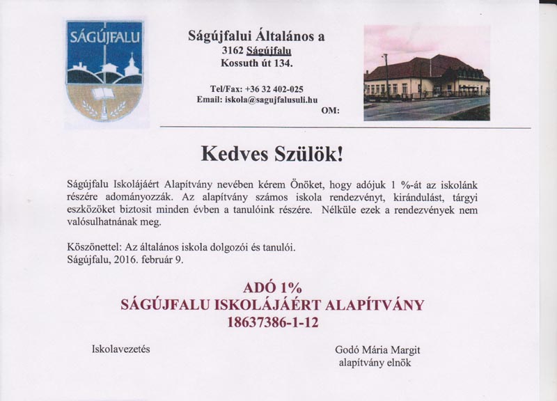 SÁGÚJFALU ISKOLÁJÁÉRT ALAPÍTVÁNY